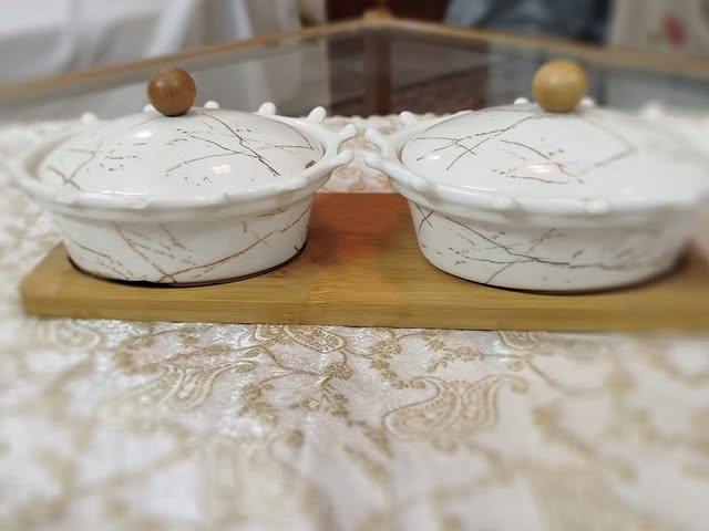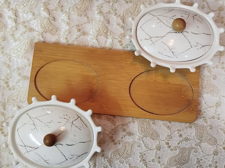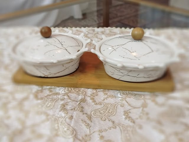 Perfect for dips, sauces, nuts, or condiments, this small 2-bowl serving platter is a must-have for stylish yet functional entertaining.