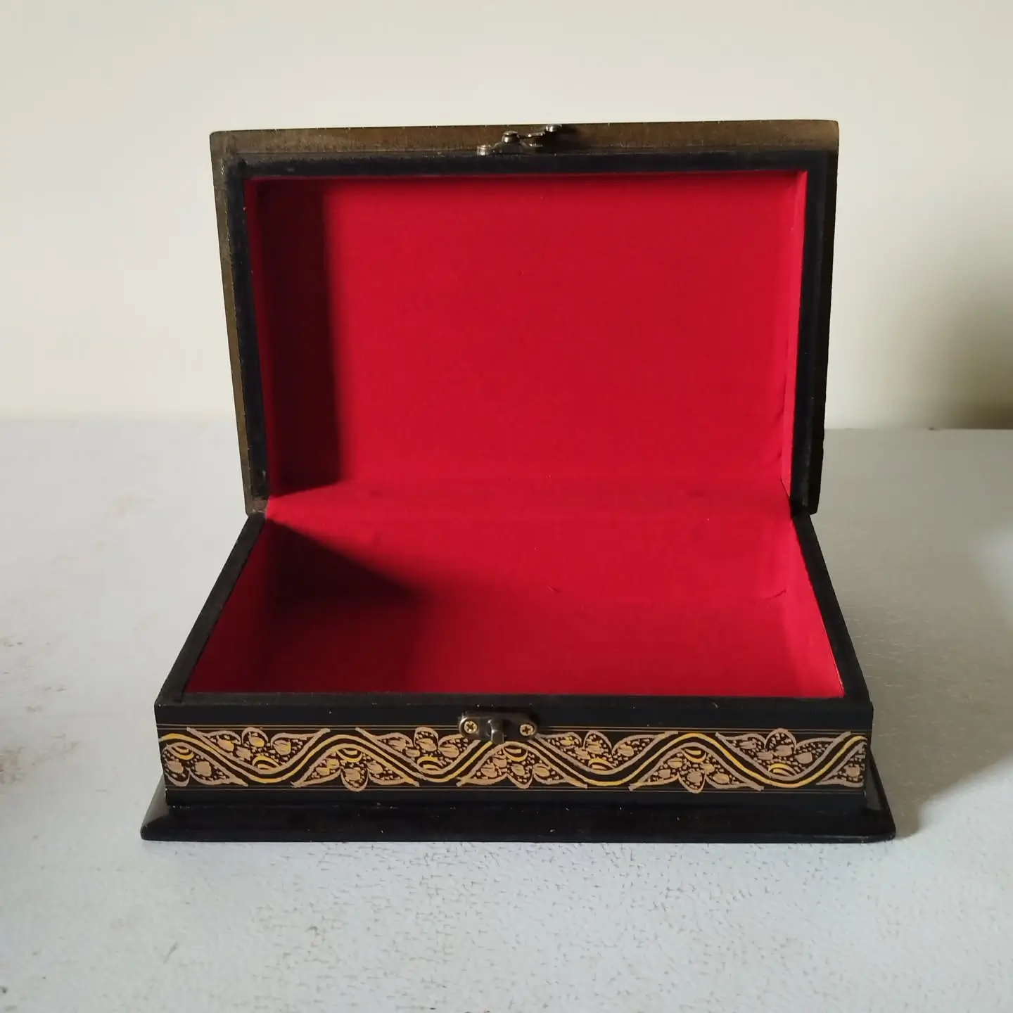 A handcrafted storage container made from wood, designed to organize, protect, and display jewellery items such as rings, earrings, necklaces, and bangles.